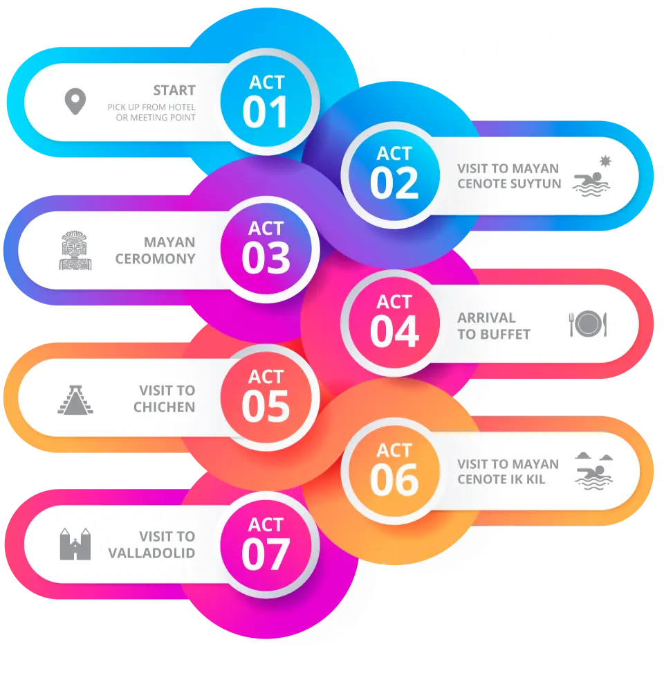 Travel comfortably aboard our luxury buses, equipped with air conditioning, restrooms, and certified guides who will share the secrets of Chichen Itzá.